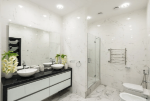 A-lavish-bathroom-with-pristine-white-marble-floors-and-gold-accents-creating-an-opulent-atmosphere-300x200.webp