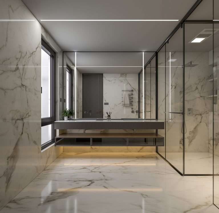 A-lavish-bathroom-with-pristine-white-marble-floors-and-gold-accents-creating-an-opulent-atmosphere-768x512.webp